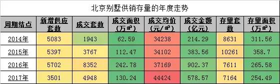 以别墅为例,从上图可以看出近两年别墅成交量放大,2017年成交4948套,供应却只有3501套,库存也是一路减少,改善类的别墅将越来越少有。