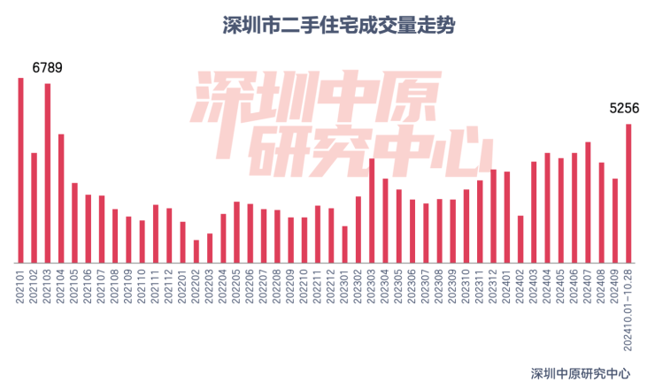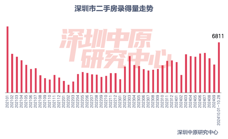 据深圳中原研究中心监测显示,截至10月28日,深圳二手住宅过户量为5256套,创近43个月新高。深圳二手房录得量为6811套,为2021年2月以来新高。