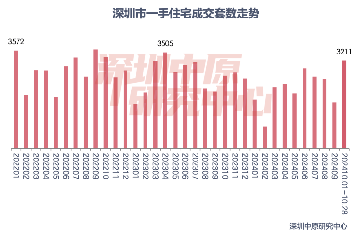 据深圳中原研究中心监测,截至10月28日,深圳新房住宅已认购11185套,超过过去4个月购房合同网签量总和。同时,深圳新房住宅网签量达到3211套,为近18个月最高。据深圳中原研究中心测算,至10月末,新房网签量有望创2022年以来新高。