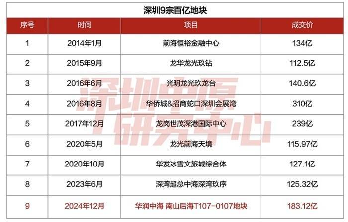深圳历史上的9宗超百亿地块 图源:中原地产深圳