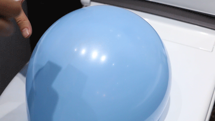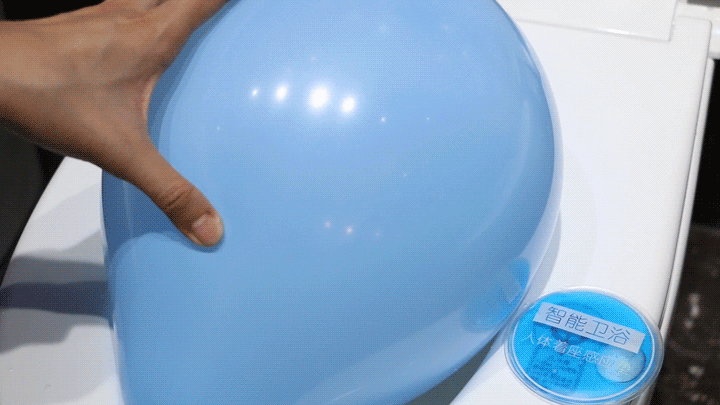 小编这就来测试一下,将涂抹了番茄酱的气球对准女性清洗模式的水柱,几秒钟后气球已恢复洁净。可见,清洗水柱的清洁力杠杠的。