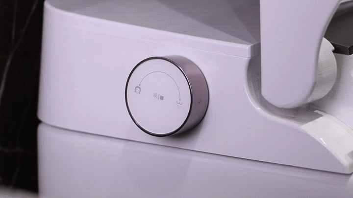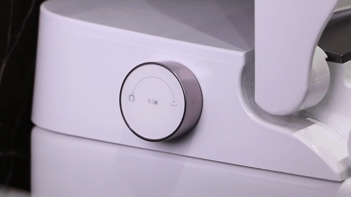 前旋开启臀部清洗模式,后旋启动女性清洗模式,轻轻短按即可开启冲水或停止当前功能,在着座状态下没有使用其他功能时,长按3秒则会为用户打开暖风烘干模式,快速恢复干爽。