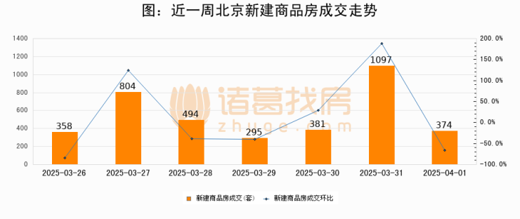 【北京成交日报】04月01日新房成交374套、二手房525套;涨价房源113套
