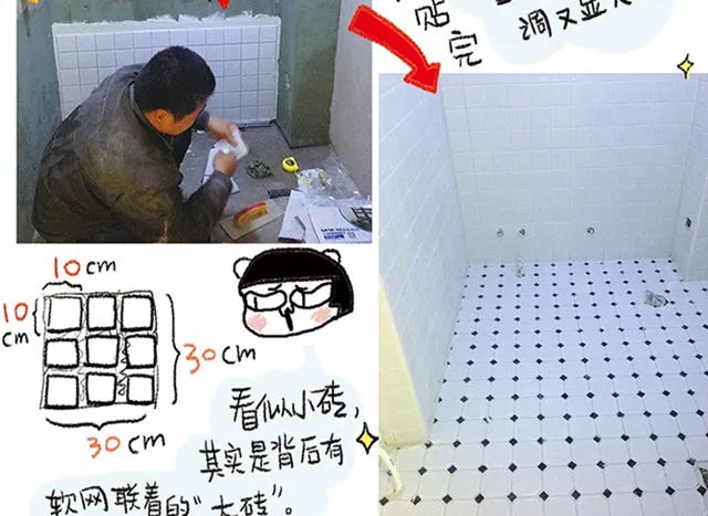 ▲用粘胶勾缝而合一产品贴出的瓷砖