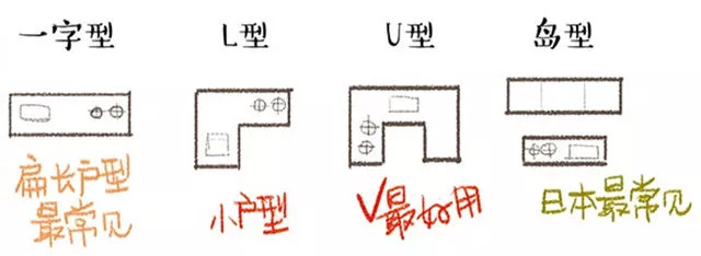 U型的可操作空间较多,但考虑到人的活动,台面中间的距离不能小于1.2米。