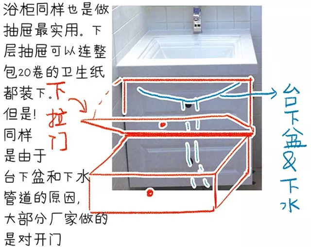 有下水管道和燃气管道阻碍的地方,不能做抽屉,可以做拉篮。