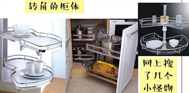 拉篮适合收纳零碎的瓶瓶罐罐,使用时旋转或者拉出。不过,国内的很多拉篮质量较差,要小心识别。