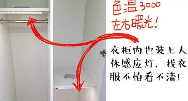 衣柜里也安装即开即亮的LED红外线感应灯。