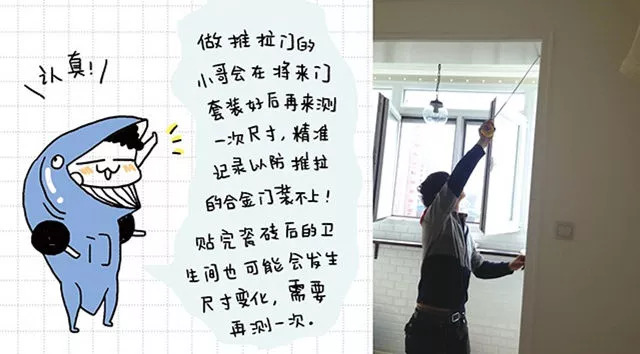 排名前列次,在瓷砖和过门石贴好以后,测量门洞尺寸;第二次,装好门套以后,再精确测量一次,防止门做好却装不进门套。