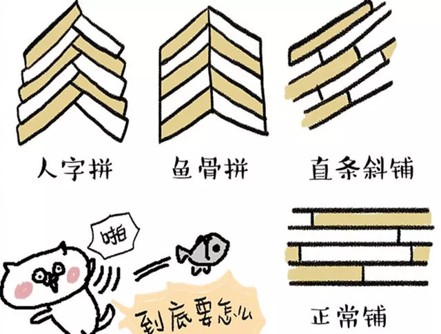 虽然斜拼里的鱼骨拼和人字拼都美美哒,但是斜拼的地板,到墙边都要被裁掉一块,所以斜拼费工、费料,适合面积大的房间。