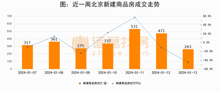 【北京成交日报】01月13日新房成交263套、二手房171套;涨价房源136套
