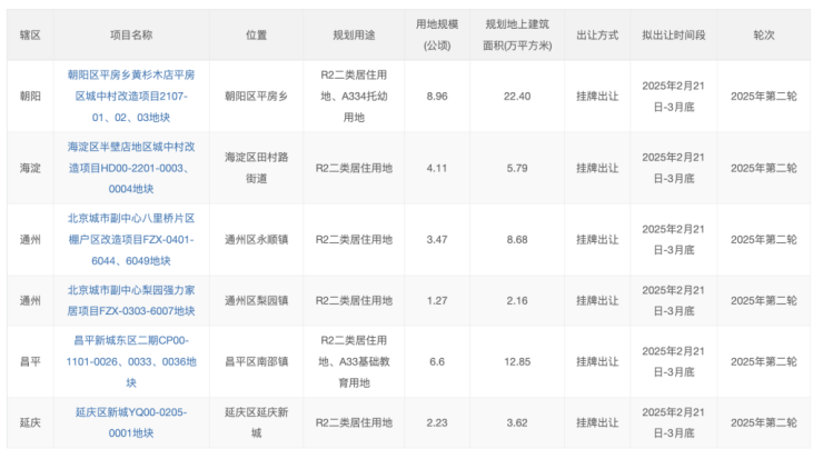 北京发布今年第二轮拟供商品住宅用地清单,共计6宗27公顷