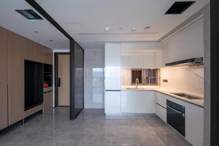 LDKB一体化客餐厅打造了高效生活动线,可开可合的岛台式厨房让购房者纵享亲子烘焙与甜蜜烹饪时光,全屋的大容量收纳与定制化可调节收纳系统,也可以满足多种家庭结构的收纳存储需求。