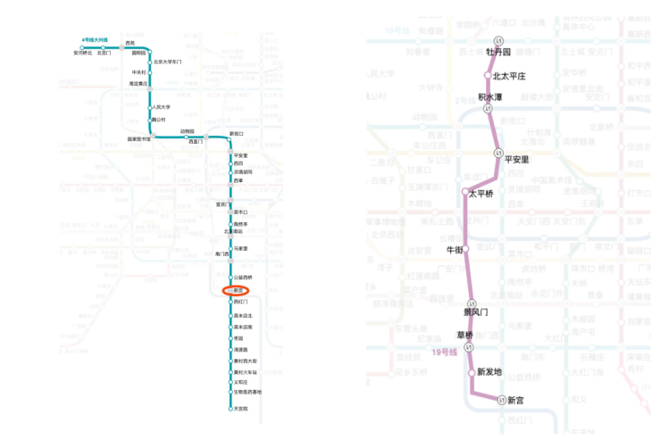新宫的位置在丰台南四环边,京开高速以东,因为坐拥环线+轨道交通的优势,整个板块通达性很好。这个板块有2条地铁线覆盖,新宫地铁站是地铁4号线和19号线的交汇站,地铁4号线,穿越大兴、丰台、西城、海淀等区域,覆盖西单、中关村等商圈;19号线,大站快线,缓解四号线的客流压力。自驾可以走南四环和京开高速,整体来看,这个板块的交通是十分方便的,通达性很强。