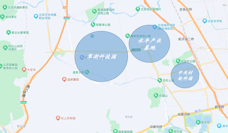 宗地周围自然环境也不错,往北还有“海淀小江南”之称的齐物潭公园。这片高新产业落位不少,华为就在这。宗地北侧还有北京一零一温泉校区。