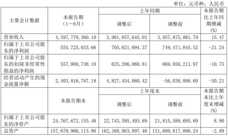 中报显示,今年上半年,陆家嘴实现营业收入约45.98亿元,同比增加15.47%;归属上市公司股东的净利润5.56亿元,同比减少21.24%;经营活动净现金流为24.04亿元,同比下降50.21%;基本每股收益0.1155元/股。