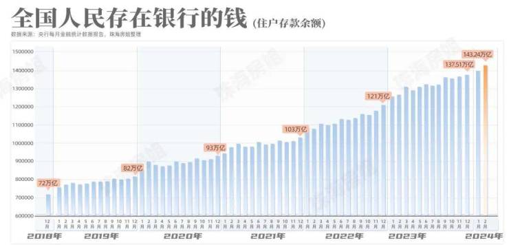 截至2月末,住户存款余额直接到了143.24万亿,目前中国人口就14亿多点,换言之,人均存款突破10万。