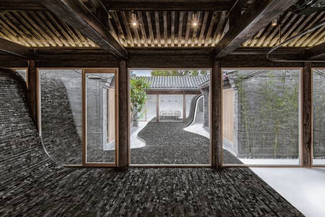 改造过的四合院改变了原本庄重、刻板的印象,营造出开放、活跃的院落生活氛围。基于已有院落格局,利用起伏的地面连接室内外,让内外空间产生新的动态关联。