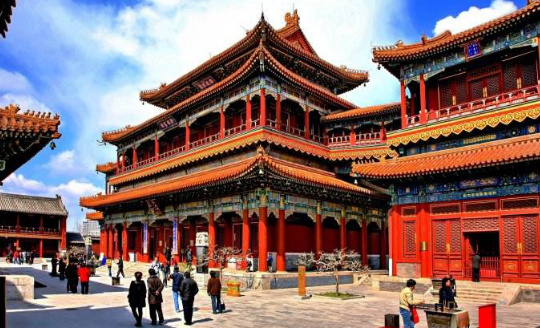 相传雍正尚未登基前就居住于雍和宫,日后的乾隆皇帝也出生在这里,从风水意义来说,雍和宫是产生两位皇帝的风水宝地。雍和宫坐北朝南、风水区位俱佳,经测为子癸之间小空线,整个建筑布局院落从南向北渐次缩小,而殿宇则依次升高。形成“正殿高大而重院深藏”的格局,巍峨壮观,具有汉、满、蒙、藏民族的特色。