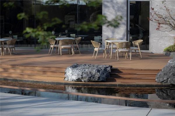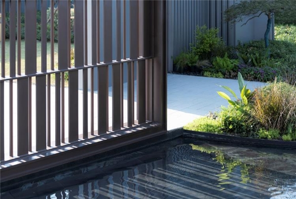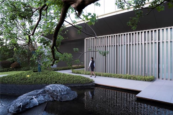 室内空间向庭院延伸,邻水小憩,视线所至,皆为绿影绰绰,景致通透而丰富,清风徐来,享受城市谧静空间。