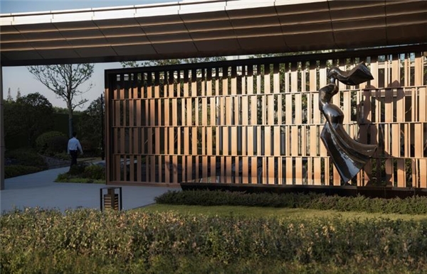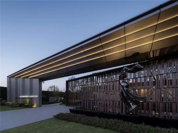 光影流动,金属格栅疏密有序,呼应律动感极强的雕塑,指引归家方向。与自然的对话,从这里悄然开启。