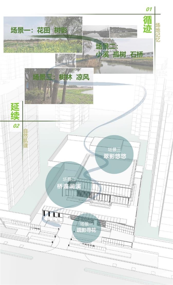 项目地块所在地苏州市双凤镇,因处在连接沪、苏的交通要道上留下了发达的路网,同时这里河网稠密,塘浦纵横,放眼遍布自然肌理的痕迹,原生自然的地域形态将我们带回了与之亲近的美好时光中。