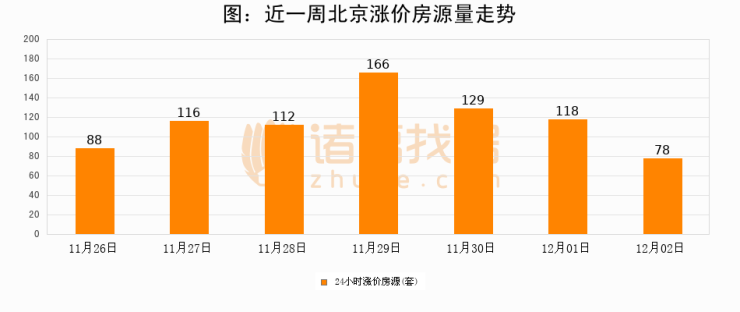 根据诸葛找房数据显示,北京24小时涨价房源量为78套,较12月01日减少40套,环比下降33.9%。与此同时,涨价房源占比小幅回落,对于购房者来说是一个入市窗口期,购房者可抓住时机入市。