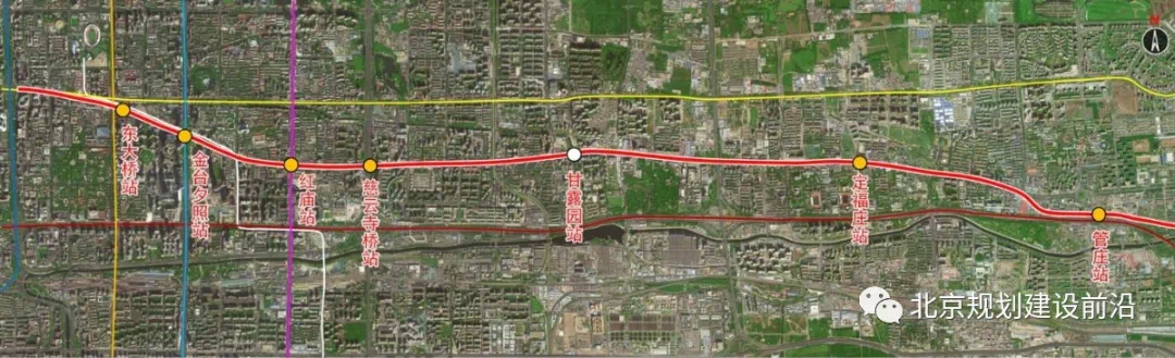 站数:共7站,东大桥站、金台夕照站、红庙站、慈云寺桥站、甘露园站、定福庄站、管庄站。