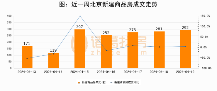 【北京成交日报】04月19日新房成交292套、二手房694套;涨价房源103套