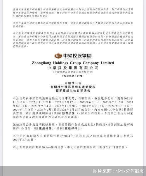 3月19日,中梁发布公告,宣布境外债务重组所有条件已获满足,3月20日起正式生效。据此前公告披露,涉及重组计划本金为11.8亿美元,本息金额合计为13.16亿美元。