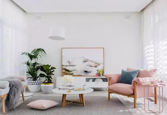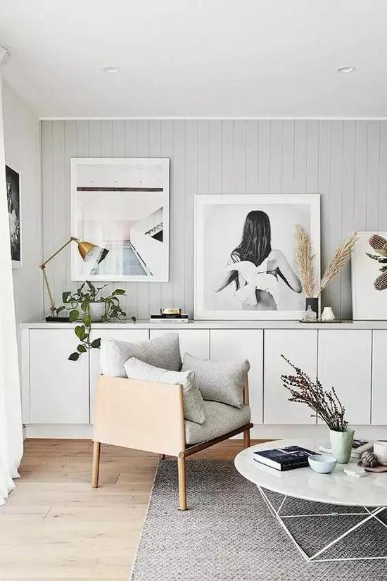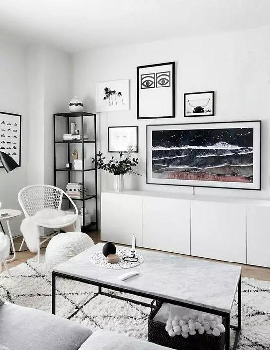 在中国,电视背景墙比沙发背景墙更受重视,装饰造型也是丰富多样。但是对于部分极简主义者,客厅适当的留白,把多余的装饰都请出去,剩下的就是宽敞、明亮的空间,留白的墙面让空间和生活有更多可能性。
