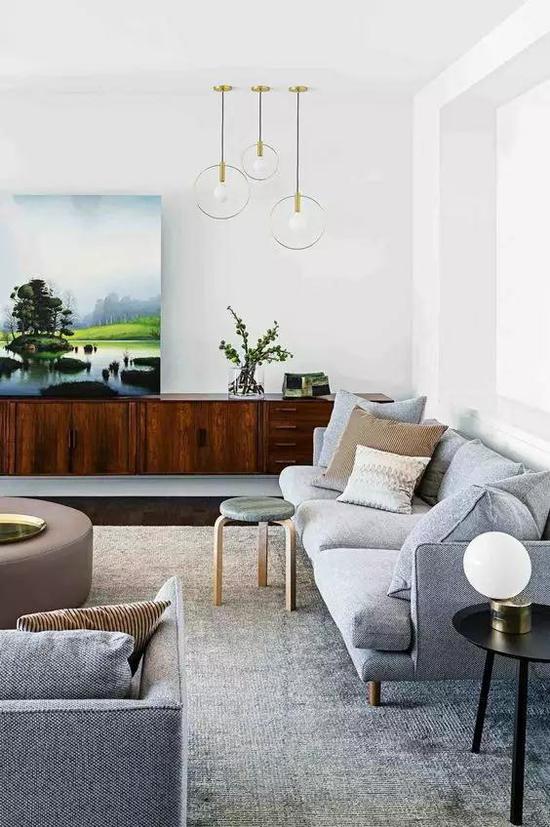 用漂亮的装饰画来代替电视,这样我们有更多的时间与家人交流情感。没有电视,沙发的摆放不必受电视的影响,可以采用围合式的分布,聚在客厅的人既能自然交换目光,又能让身体放松下来,喝茶聊天,岂不快哉!