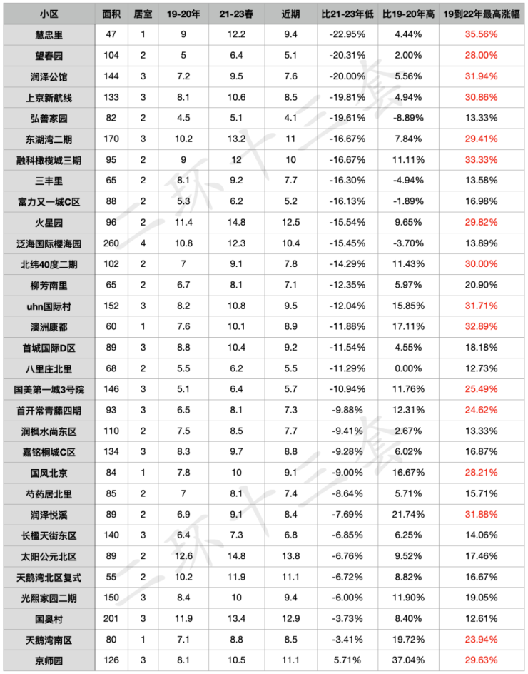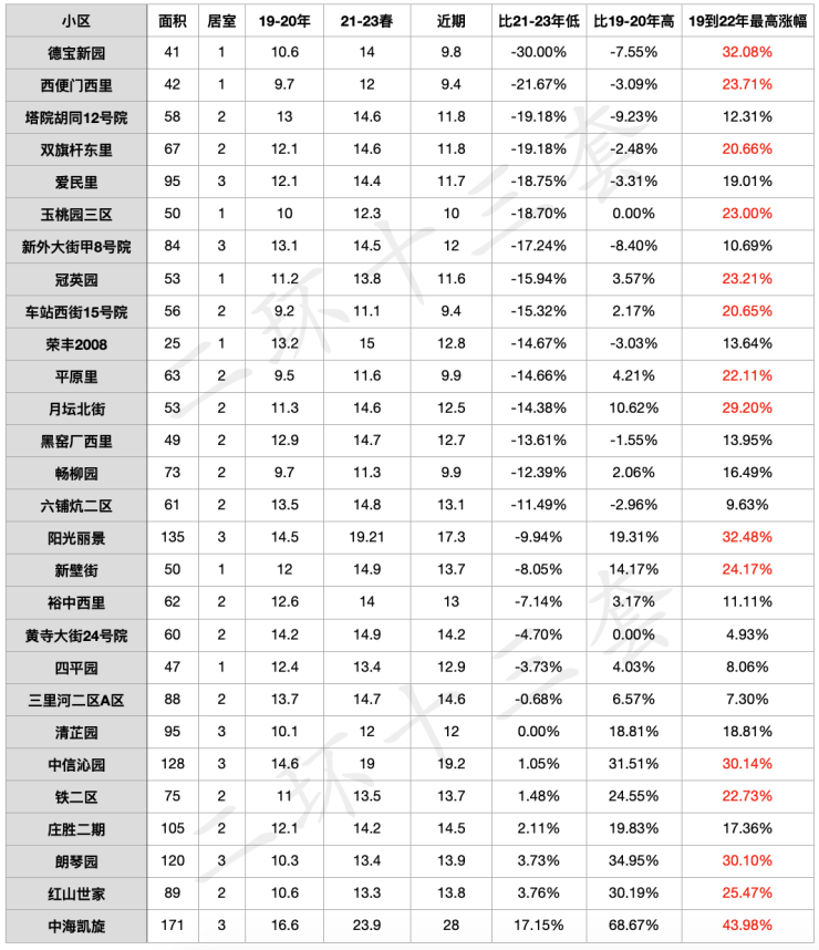 大部分距离21-23年春的高点有了10%以上的回撤,一些小区甚至回撤达到了20%以上。