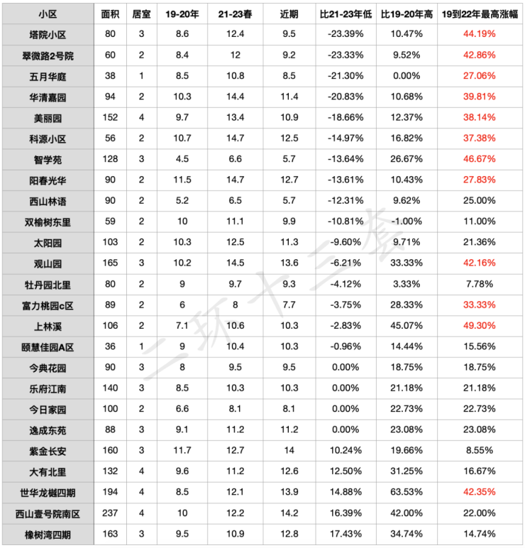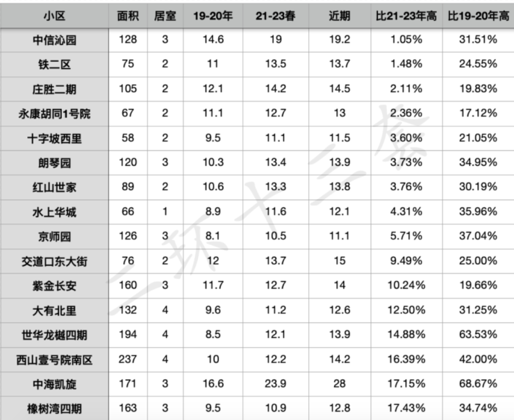 和19-20年的价格相比,很多小区仍然要比那时高10%。