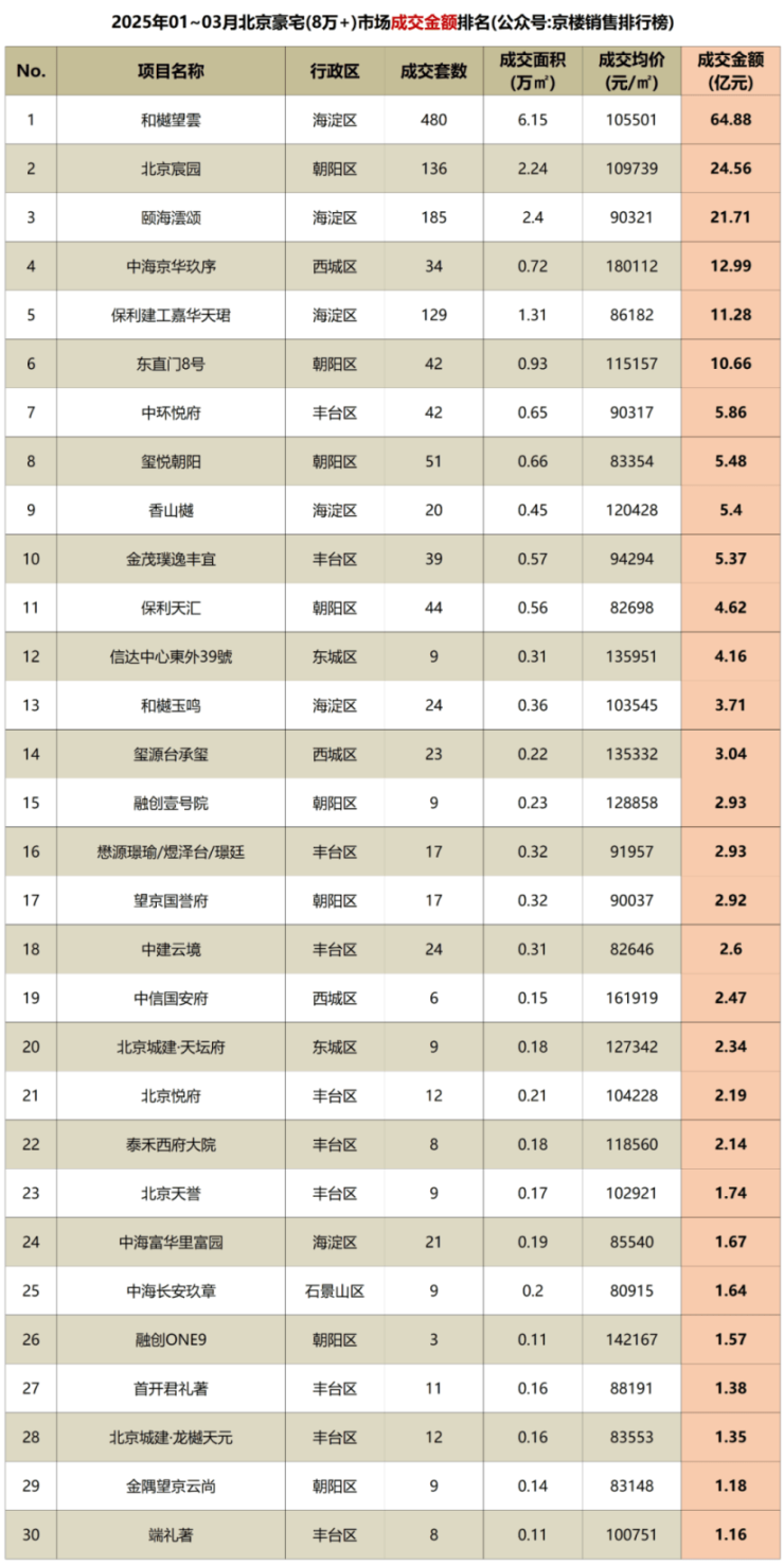 2025开年楼市黑马:和樾望雲登顶北京一季度销售排行榜首