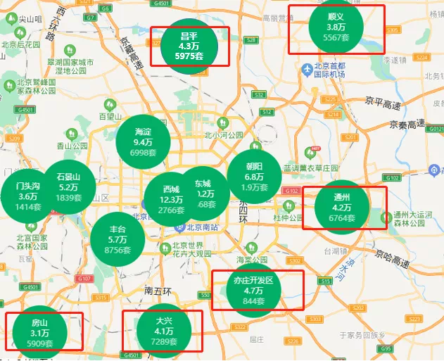 除远郊外,帝都房价的低值点仍集中在大兴、通州、房山、顺义、昌平等这些近郊。