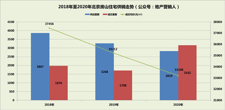 地产营销人的数据显示,从2018年到2020年,房山新房住宅供应量下滑近三成,持续走低。而逆势增长的却是成交曲线,去年房山新房成交3162套,同比2019年增长超85%,三年来首次出现成交量高于供应量的情形。