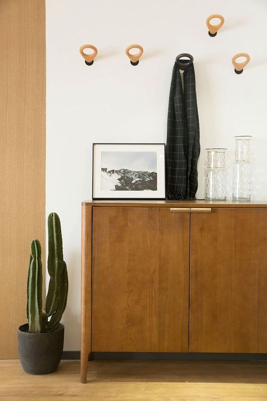 相对比原始结构玄关的拥挤狭小,改造后的玄关没有刻意的为了空间设定而去规划,而是将玄关的位置融合在餐厅的墙体储柜里,既统一空间,又起到端景美观作用。