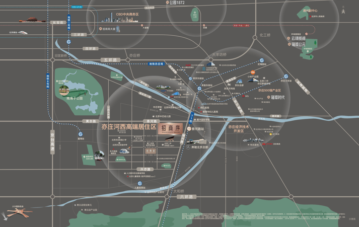 【生态宜居】招商序位居凉水河与新凤河城市稀缺两河三角洲生态区,比邻北京最大湿地公园-南海子,生态资源得天独厚鲜氧丰富,涵养身心健康。