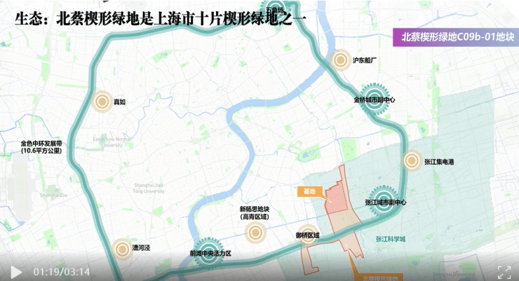 该地块位于北蔡板块东北角,邻近花木和张江板块,未来可承接两大板块外溢的客户群体。