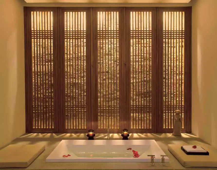装饰传统的木制屏风及竹制卷帘,营造出宁静、怀旧的氛围。
