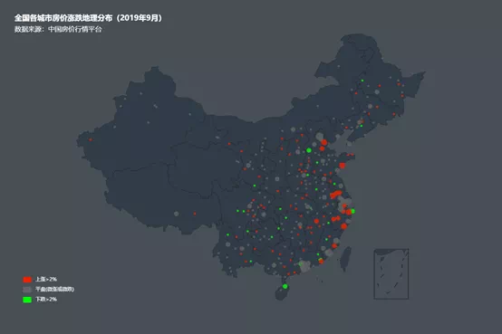 全国各城市房价涨跌地理分布(2019年9月)
