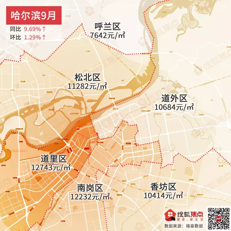 哈尔滨9月均价为11203元/㎡