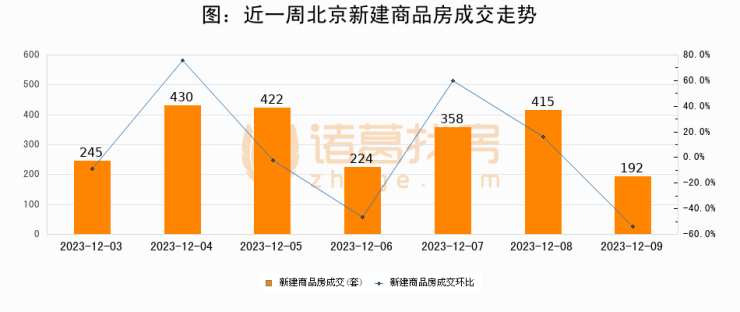 【北京成交日报】12月09日新房成交192套、二手房157套;涨价房源115套