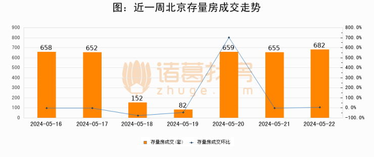 从存量房来看,2024年05月22日北京存量房单日成交682套,比昨日增加27套,环比上涨4.1%。从近一周存量房成交来看,北京存量房日均成交套数为505套,05月22日单日成交682套,高于近一周平均水平35%。