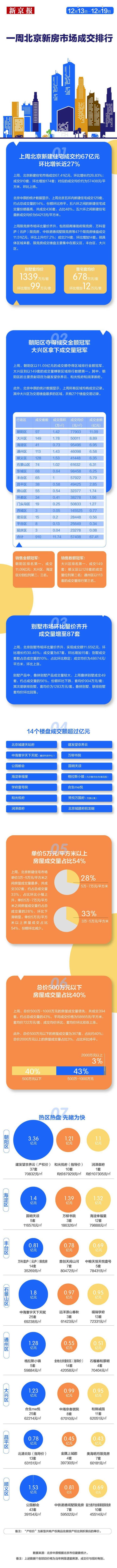 上周北京新建住宅市场“升温”,成交额、成交量环比均有所回升。根据北京中原的统计数据,上周(12月13日-12月19日),北京新建住宅市场(不包括回迁房,剔除共有产权房,含普通住宅+高端住宅+别墅)共成交67.41亿元,环比增长约26.83%;成交910套,环比增加174套;对应的成交均价约为57408元/平方米,环比上涨。