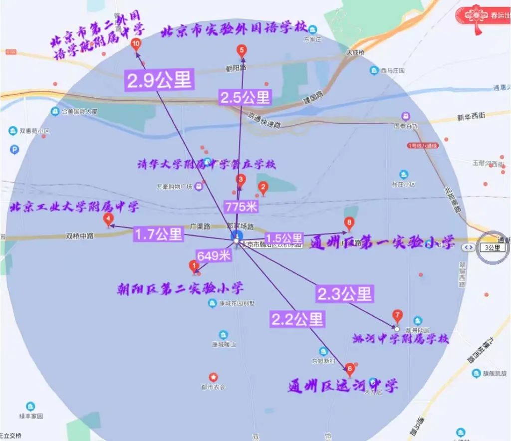 教育:附近有清华大学附属管庄学校、朝阳第二实验双桥分校、排名前列实验小学杨庄小区、北京工业大学附属中学双桥分校等。可作为参考,具体以教委划片为准。