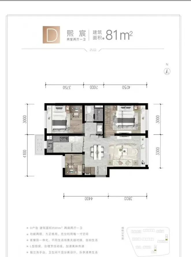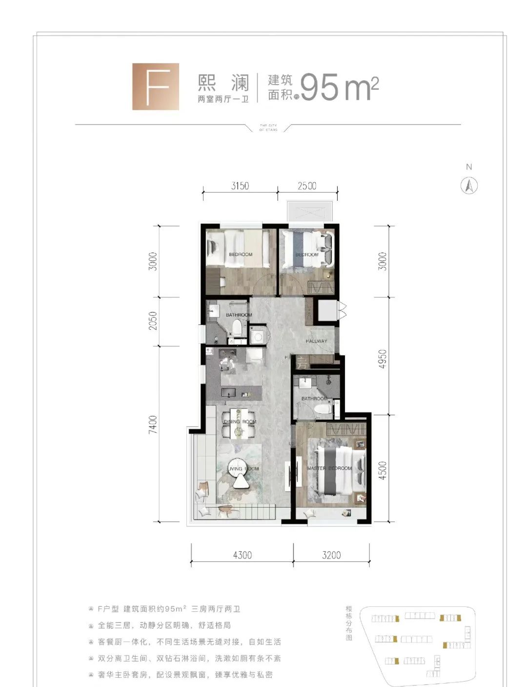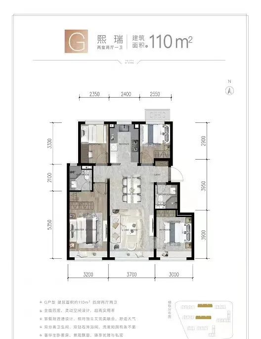 小户型两梯四户,大户型一梯两户,车位配比1:1.3,容积率2.2,层高2.95m,供暖为地暖-集中供暖。小区是纯商品房,无保障房配建,居住环境会更纯粹。