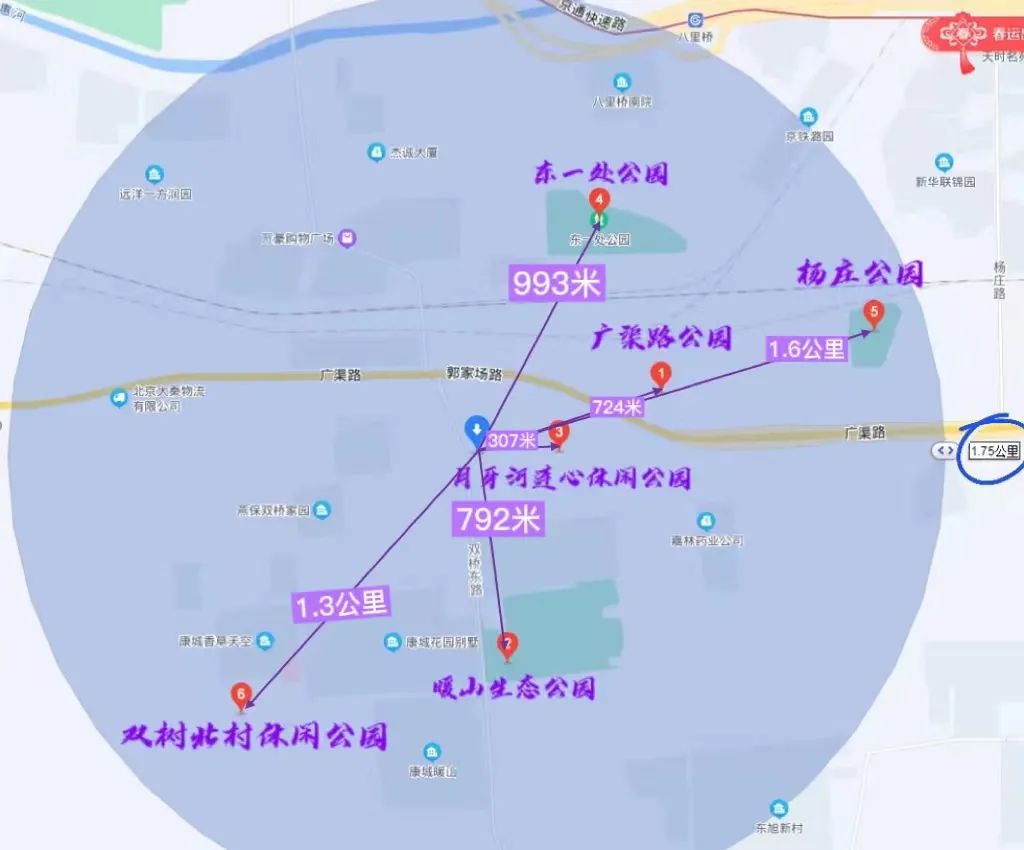 生态:附近有广渠路公园、暖山生态公园、东一处公园、杨庄公园等。