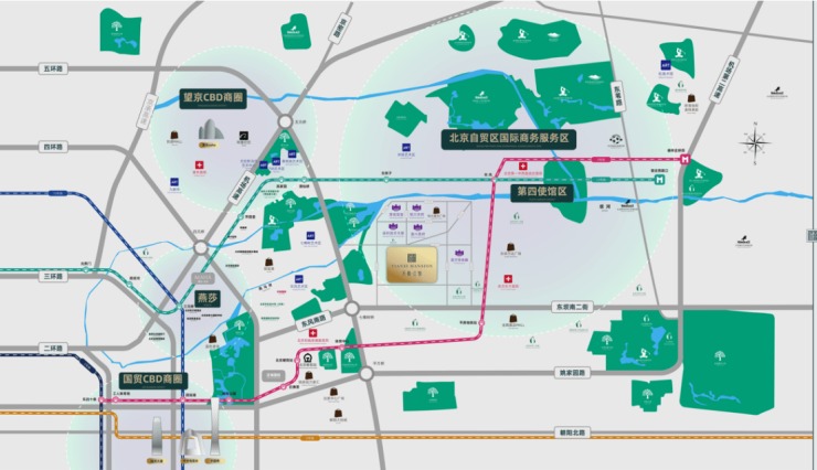 东坝承接北京CBD东扩重任,同享北京第四使馆区殊荣,肩负多项城市高端配套规划。同时在位置上北接望京、南衔CBD,两大东部聚拢财富效应的商圈构成左右逢源之势,并辐射朝青、三元桥、燕莎等其他商圈,多维复合客流交汇,澎湃商气。天禧公馆位于东坝核心区域,未来资产的升值空间不言而喻。